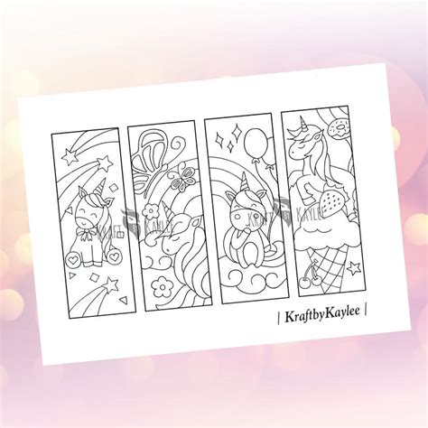 Cute Unicorn Coloring Bookmarks Set of 4 Coloring Pages | Etsy